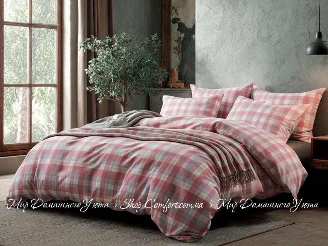 Описание Двуспальное фланелевое постельное белье Almira Mix Акварель клетка розовая 175х215