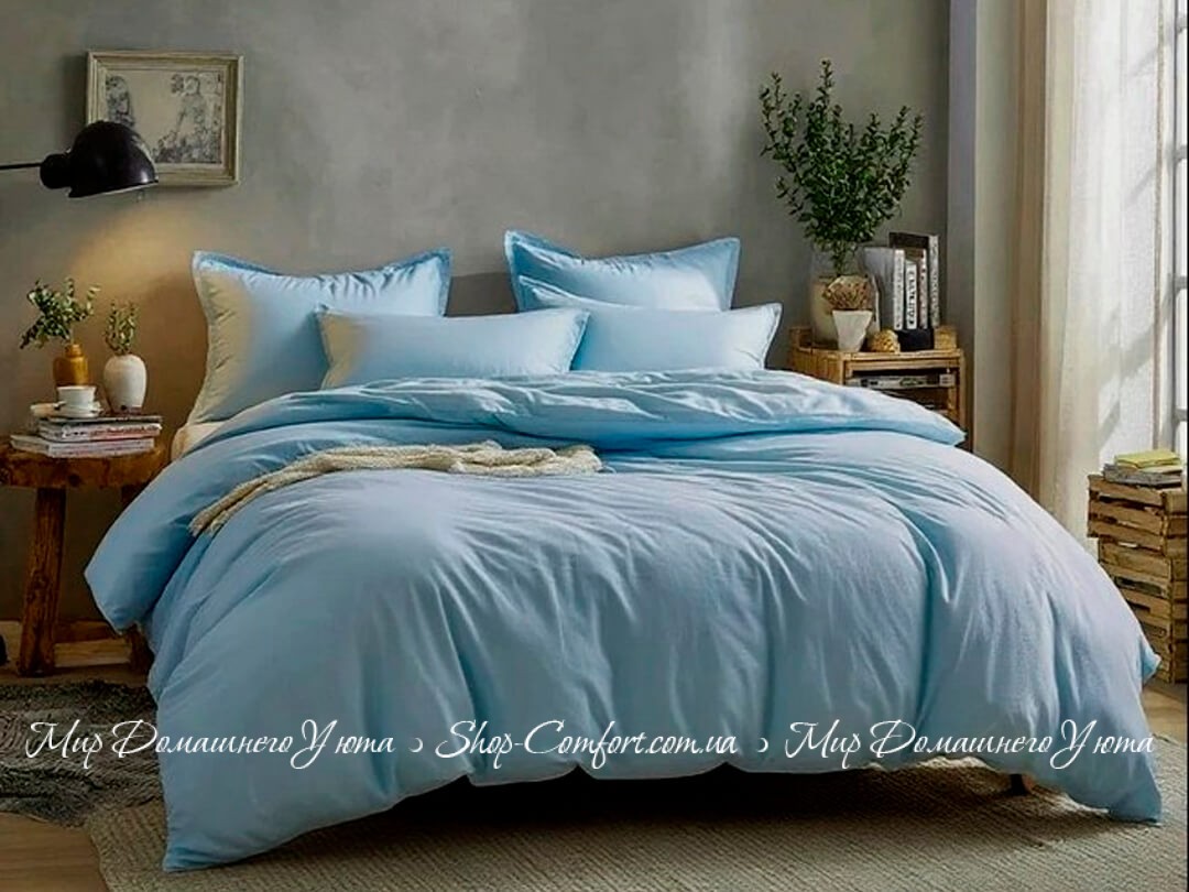 Двуспальное фланелевое постельное белье Almira Mix Премиум Голубой 175х215 Код 94041
