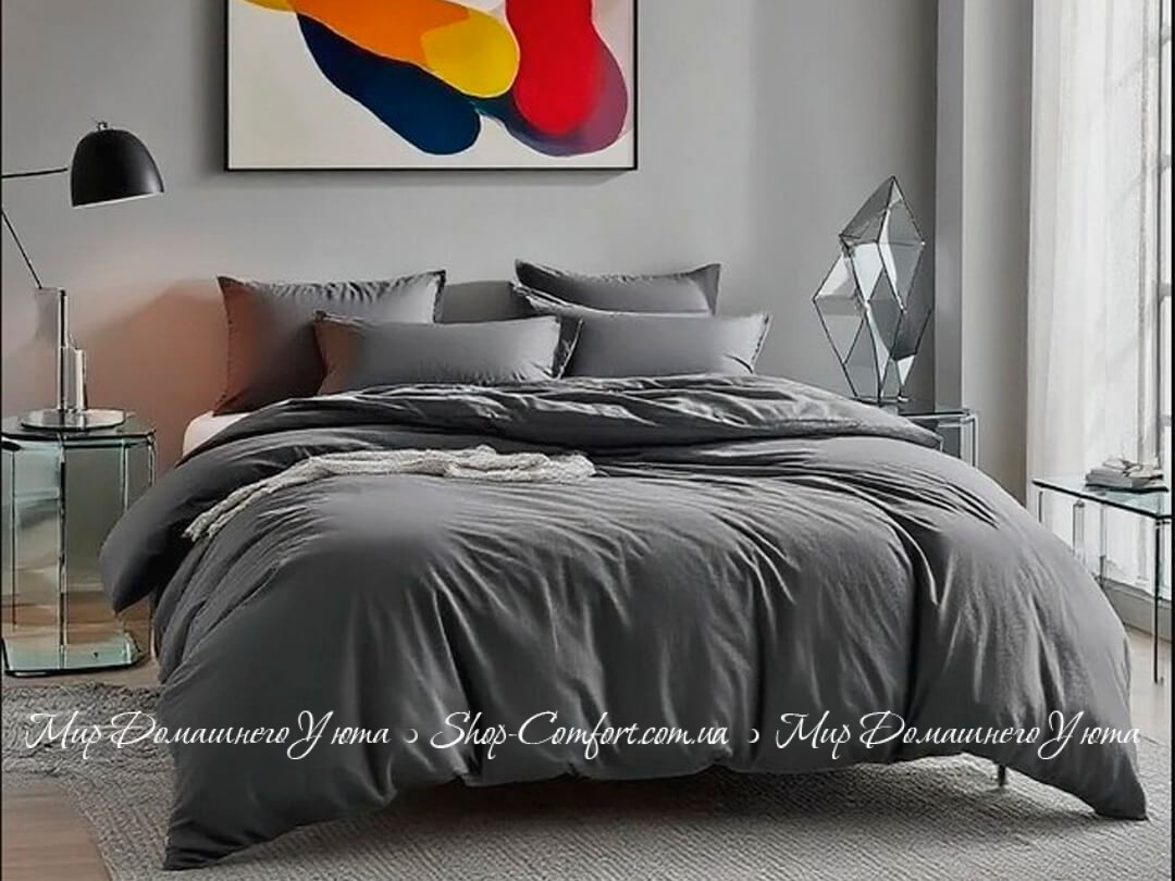 Двуспальное фланелевое постельное белье Almira Mix Премиум Графитовый 175х215 Код 94066