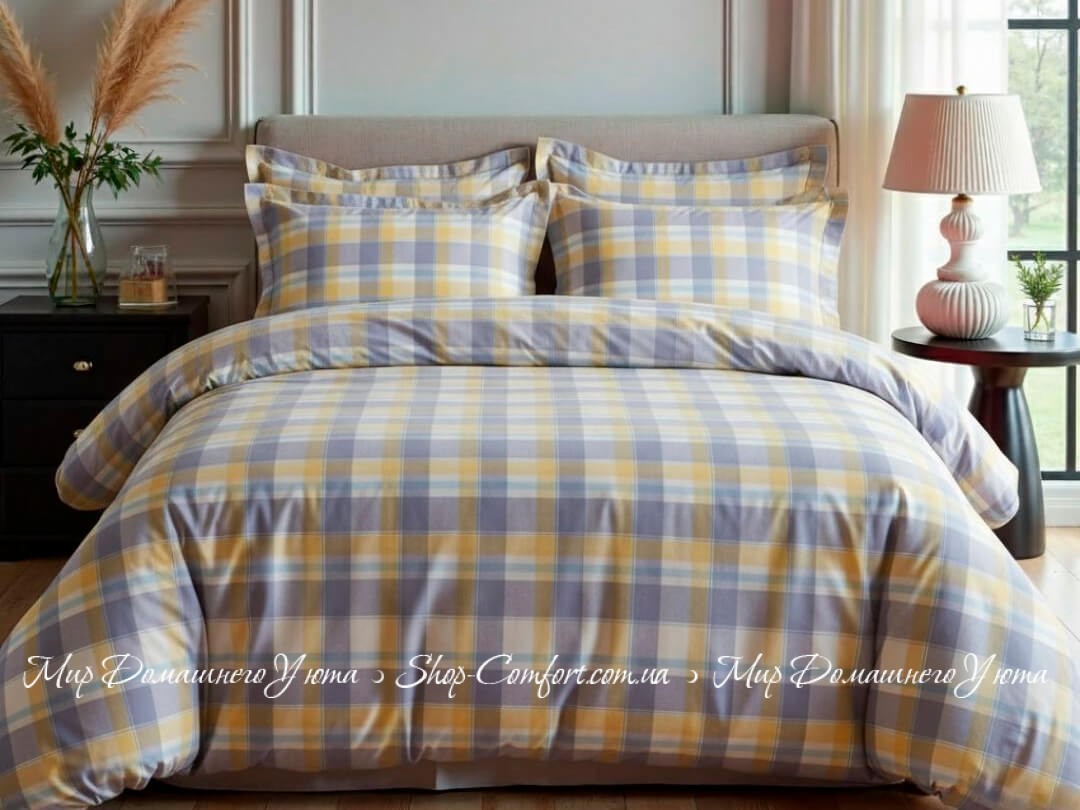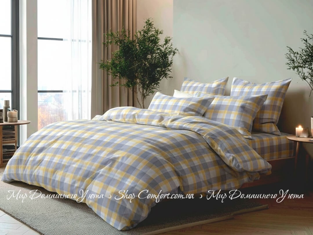 Описание Фланелевое постельное белье Almira Mix Акварель клетка серо-желтая евро-макси