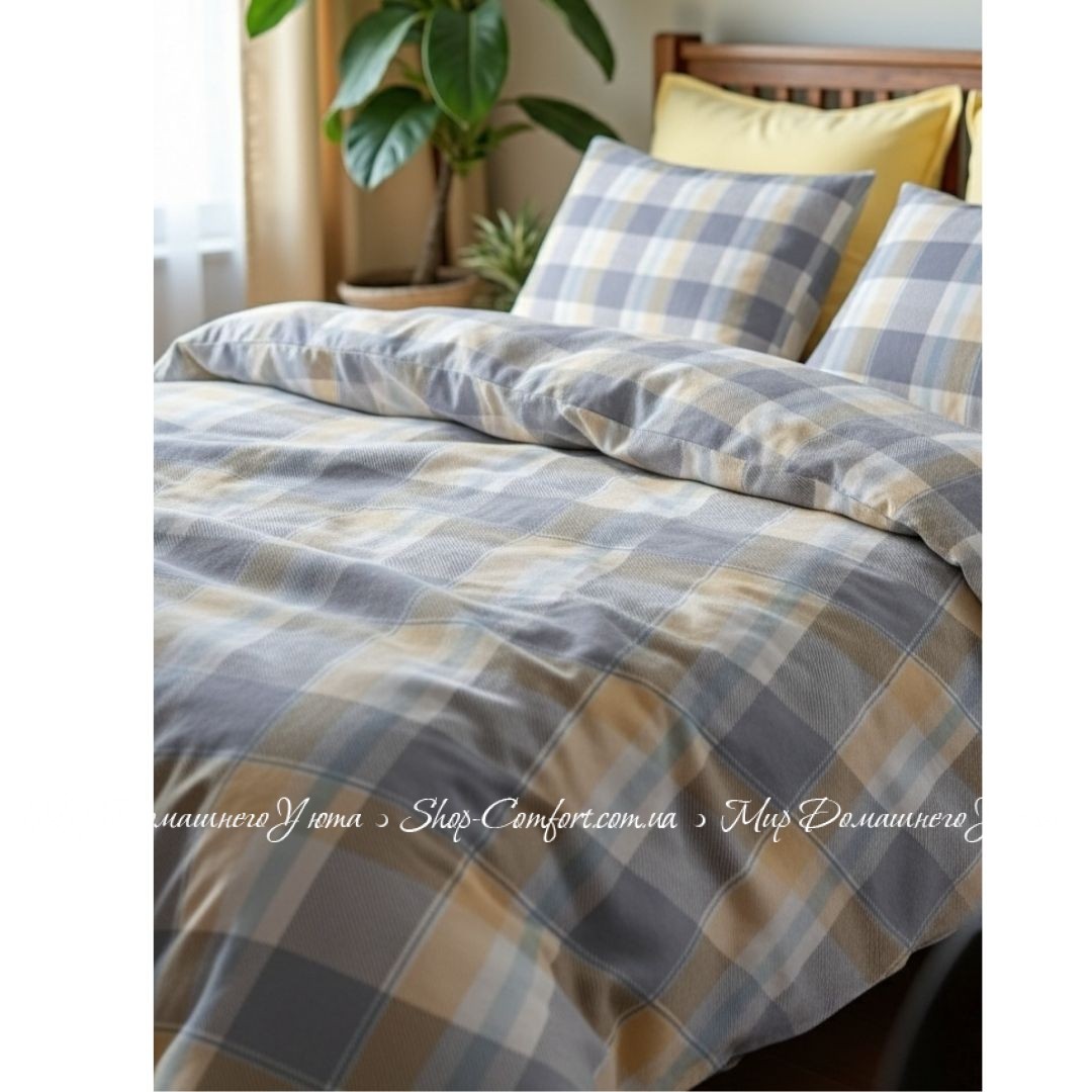 Фланелевое постельное белье Almira Mix Акварель клетка серо-желтая евро-макси Код 94119