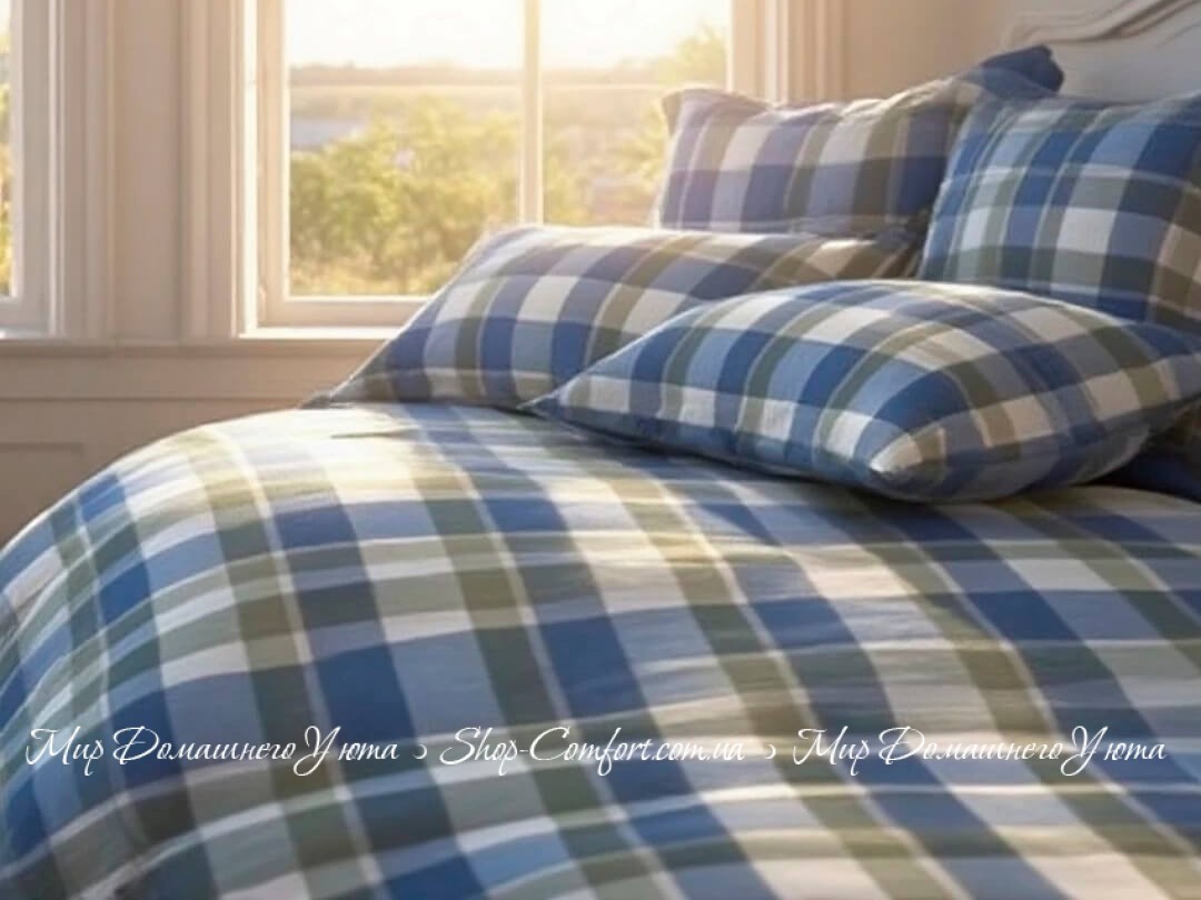 Характеристики Фланелевое постельное белье Almira Mix Акварель клетка синяя евро-макси