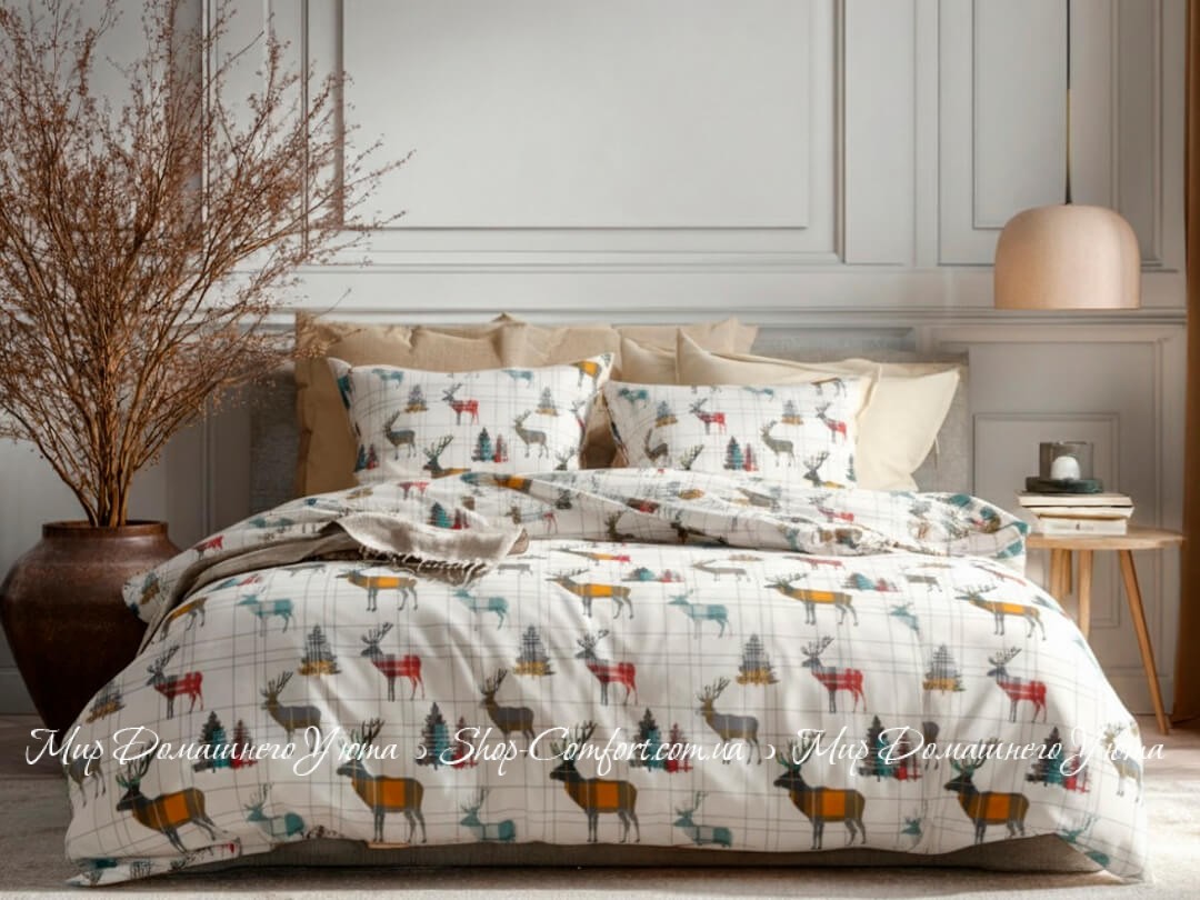 Характеристики Фланелевое постельное белье Almira Mix Олени семейное