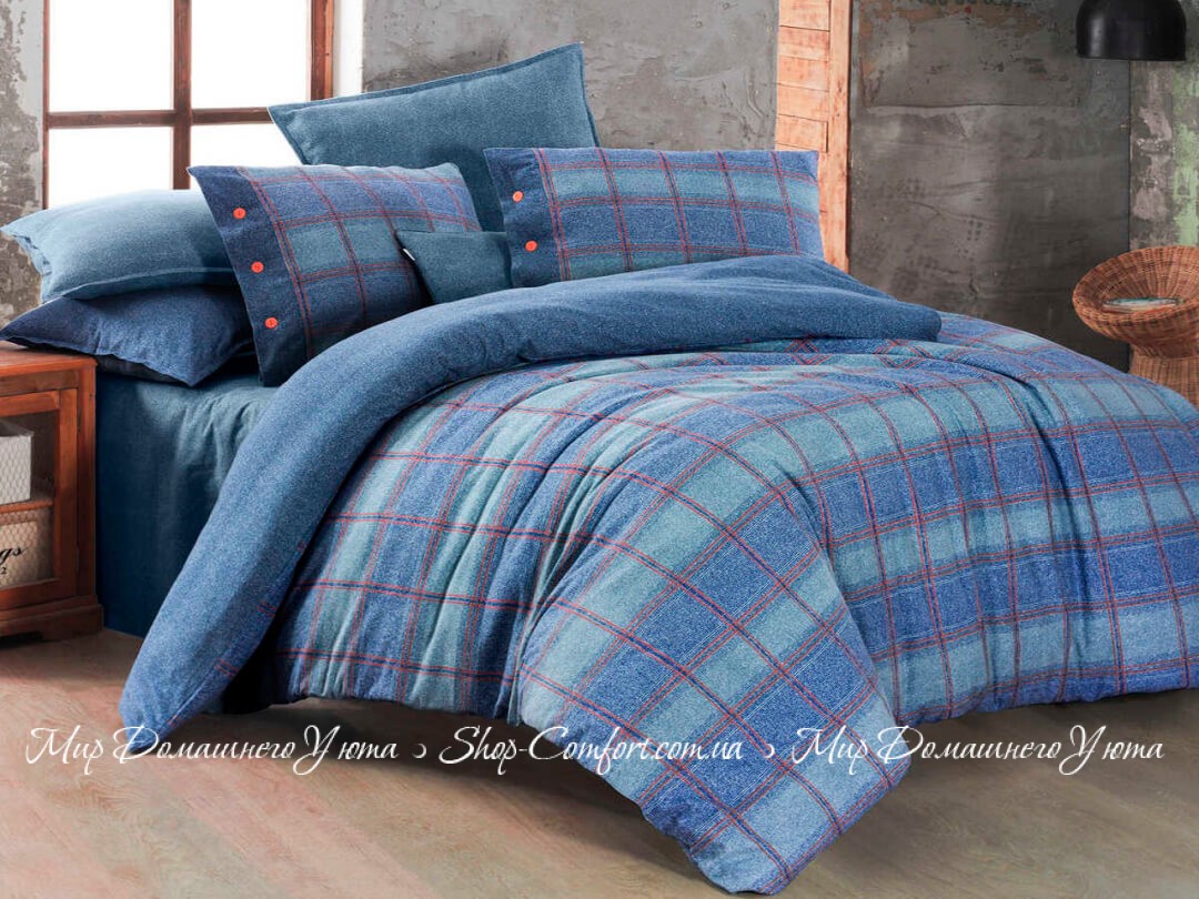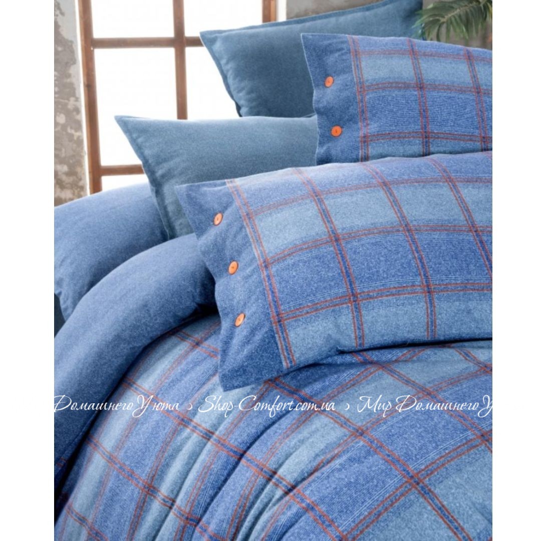 Фланелевое постельное белье Sarev Arves mavi евро Код 93933