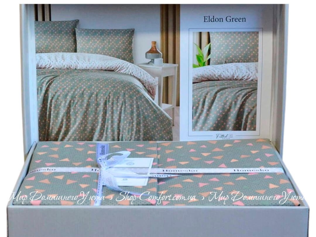 Хлопковое постельное белье First Сhoice Homesko Eldon green ранфорс евро Код 94007