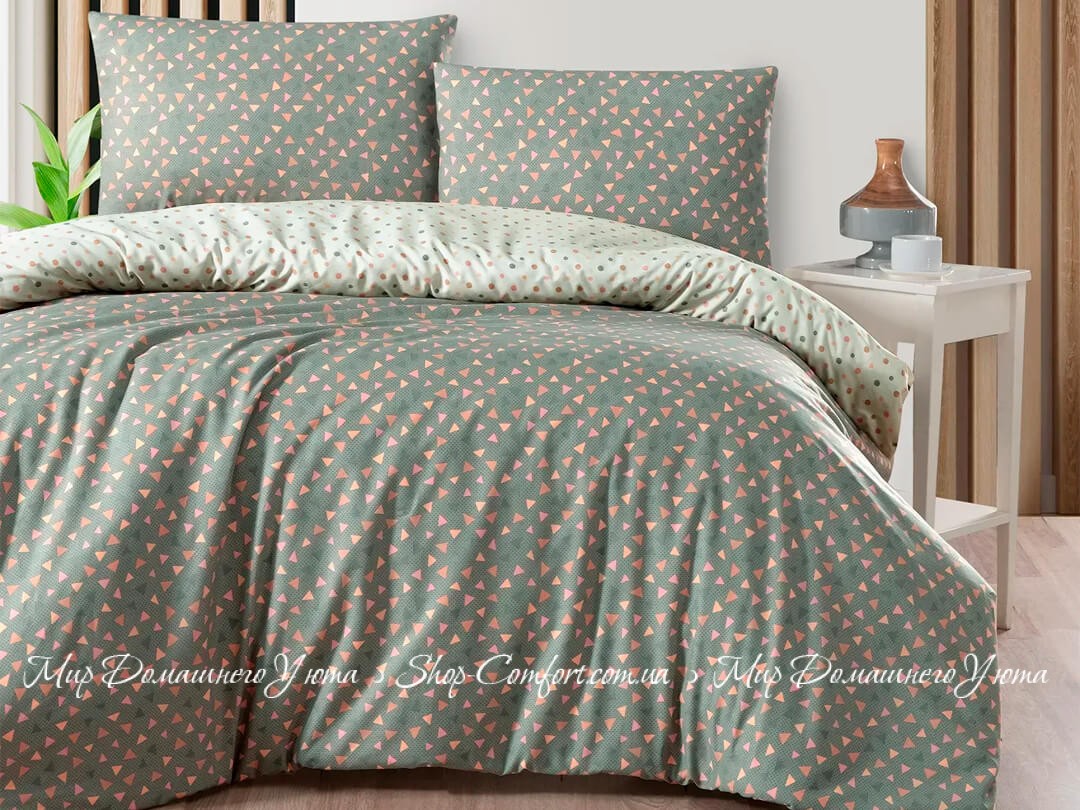 Описание Хлопковое постельное белье First Сhoice Homesko Eldon green ранфорс евро