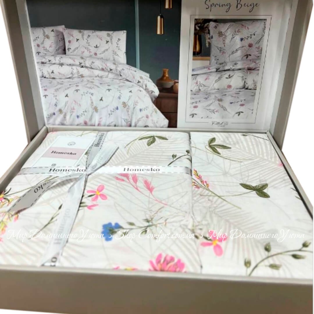 Хлопковое постельное белье First Сhoice Homesko Spring beige ранфорс евро Код 94000