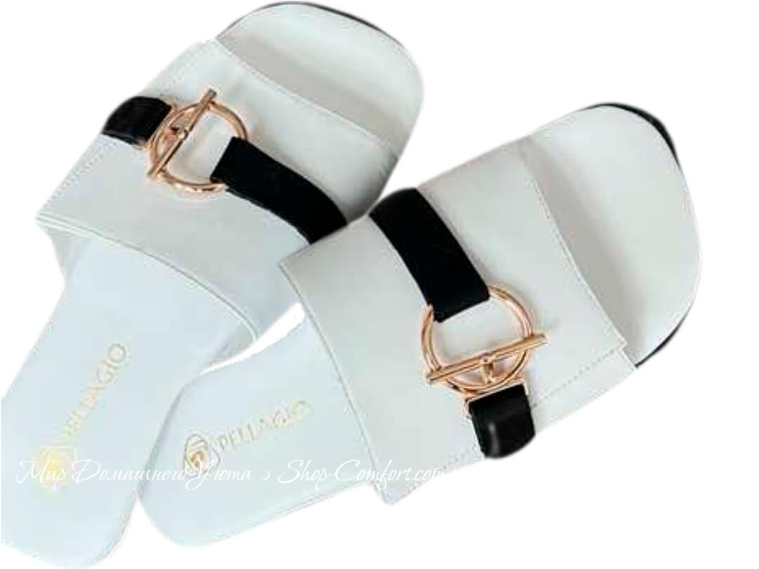 ✔ Тапочки из натуральной, гладкой кожи белого цвета