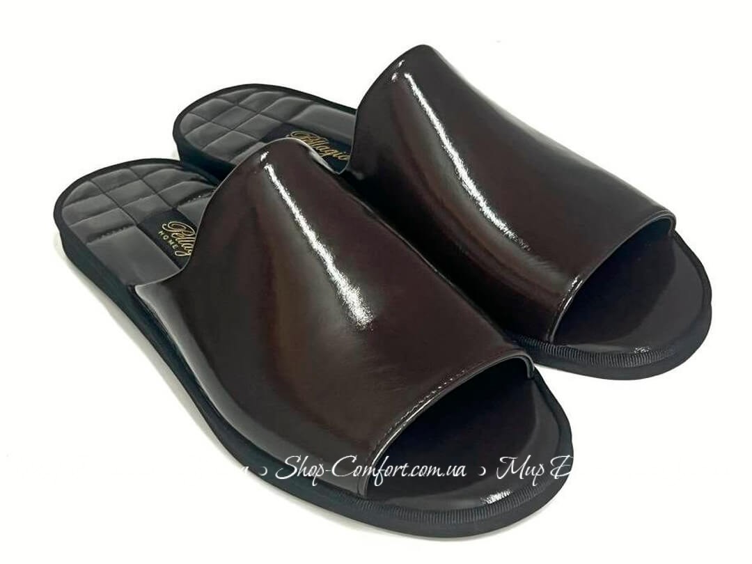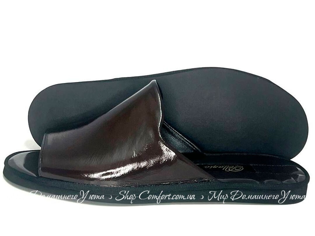 ✔ Тапочки из натуральной лакированной кожи коричневого цвета