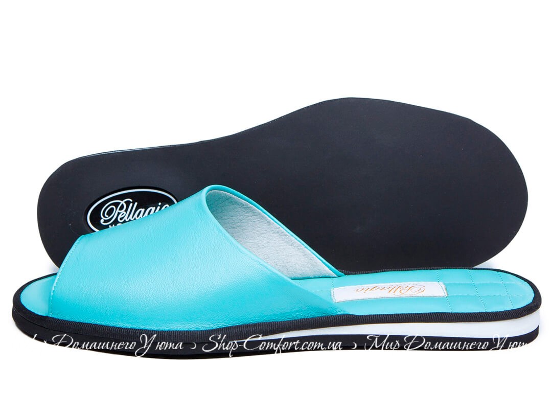 ✔ Тапочки из натуральной, гладкой кожи нежно-бирюзового цвета