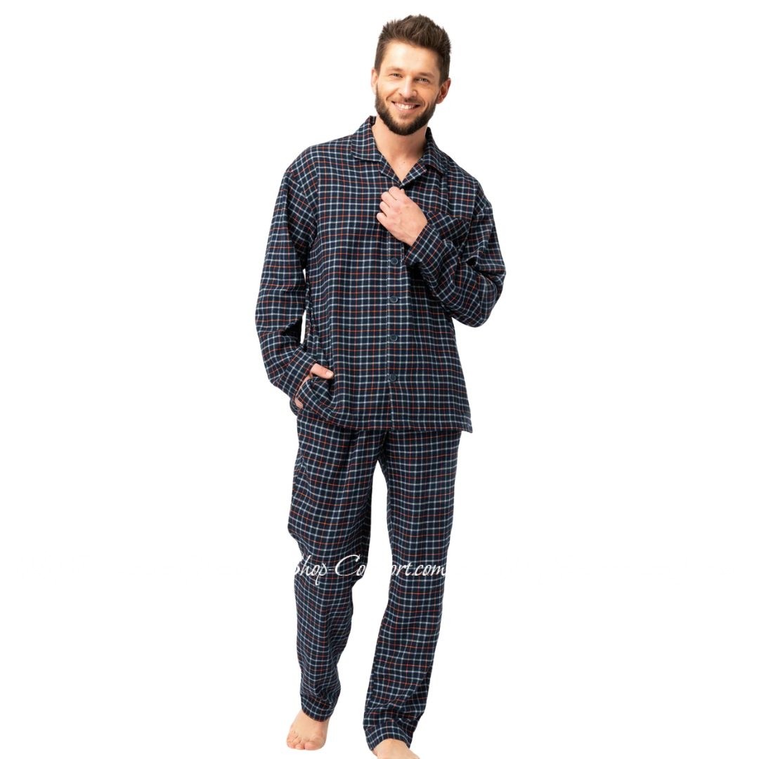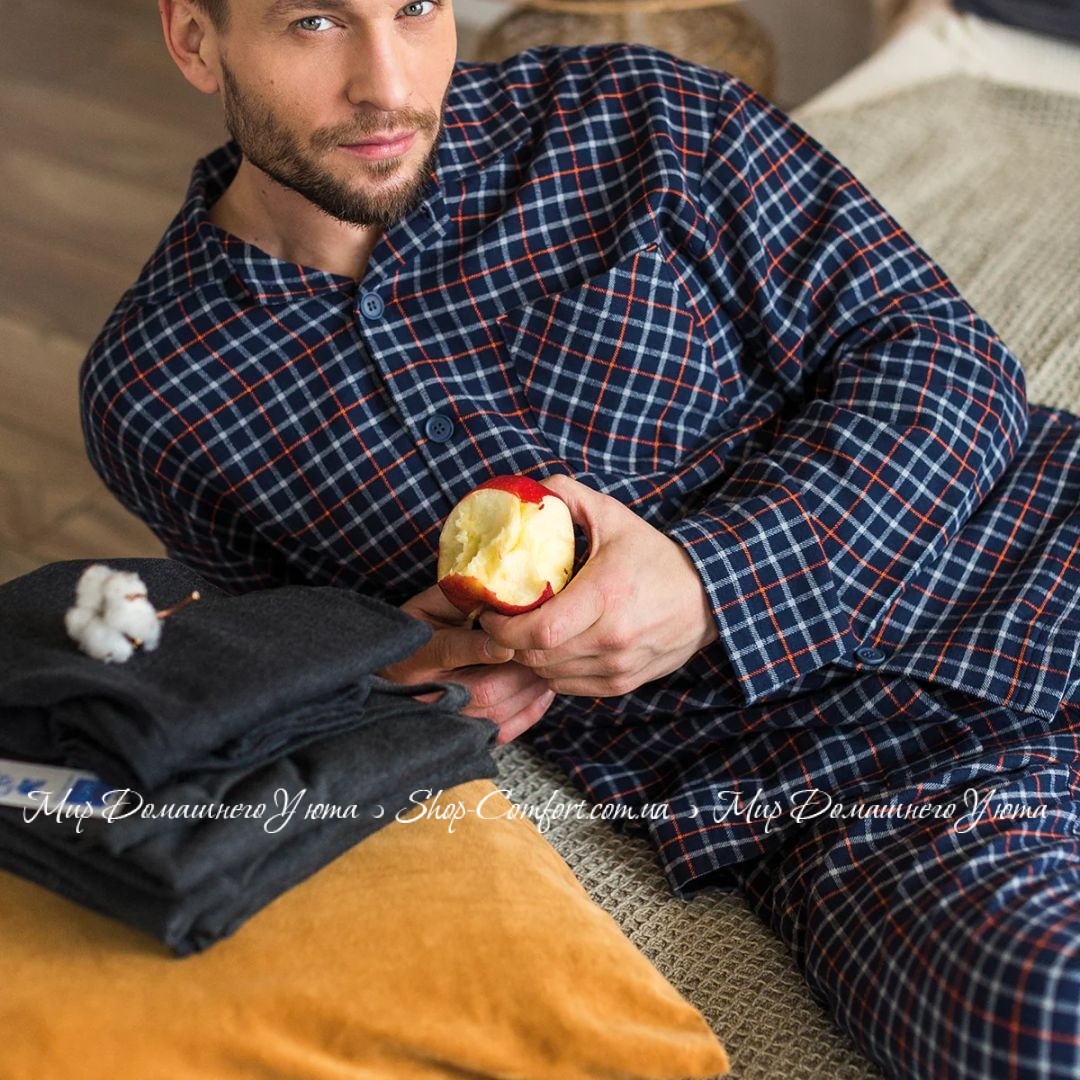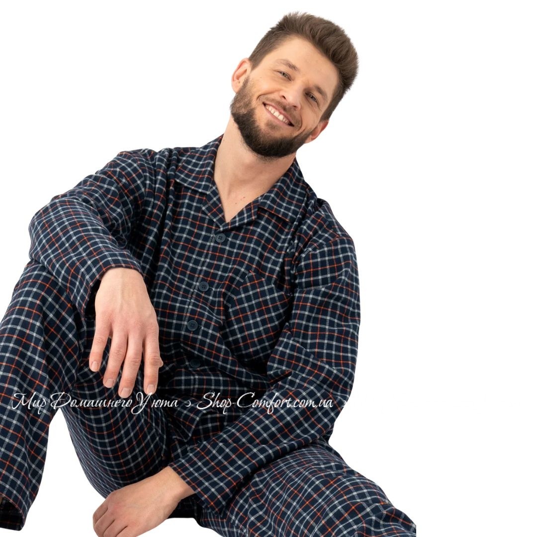 Мужская теплая фланелевая пижама на пуговицах Key МNS 480 Код 94017-M