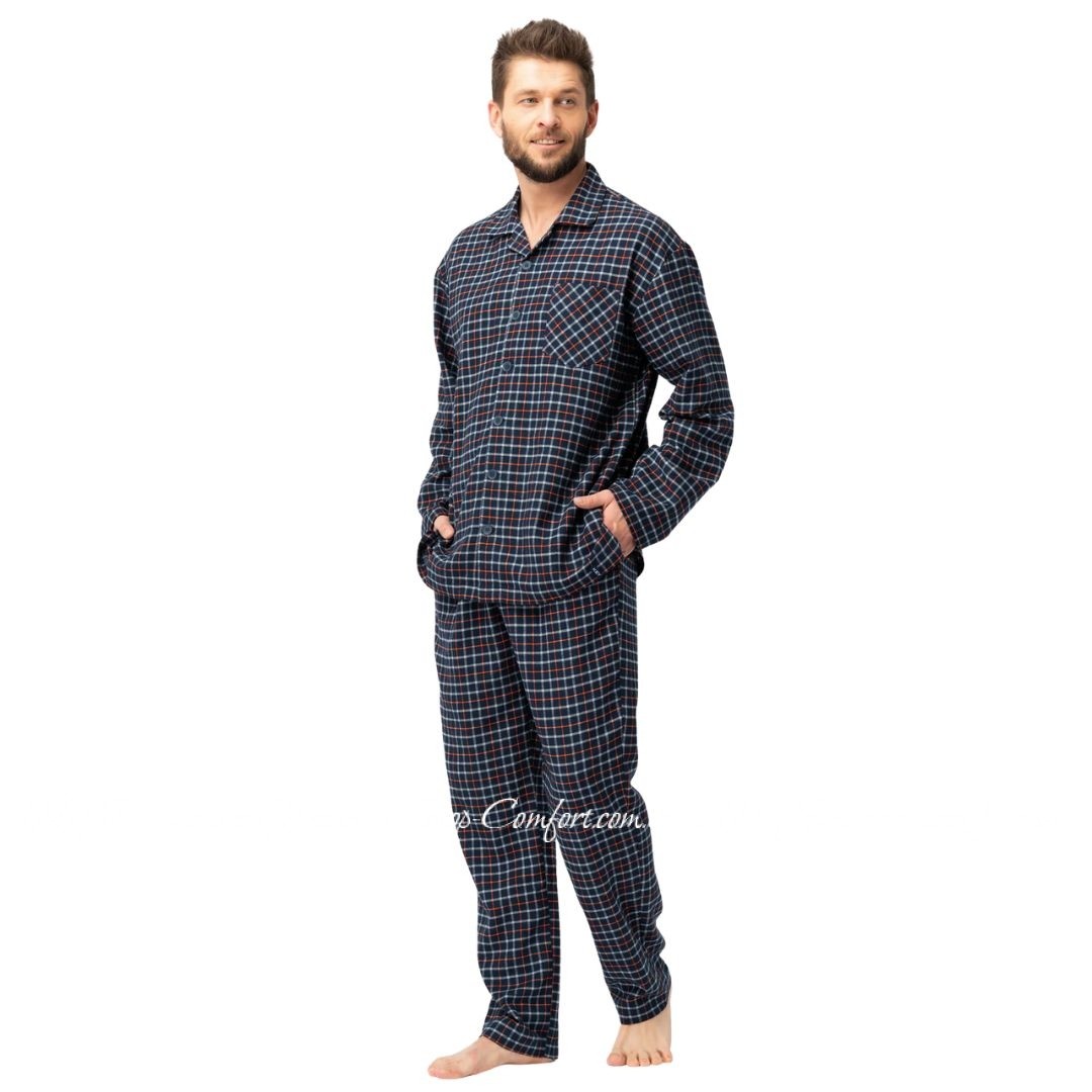 Описание Мужская теплая фланелевая пижама на пуговицах Key МNS 480