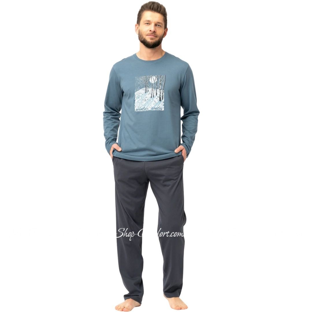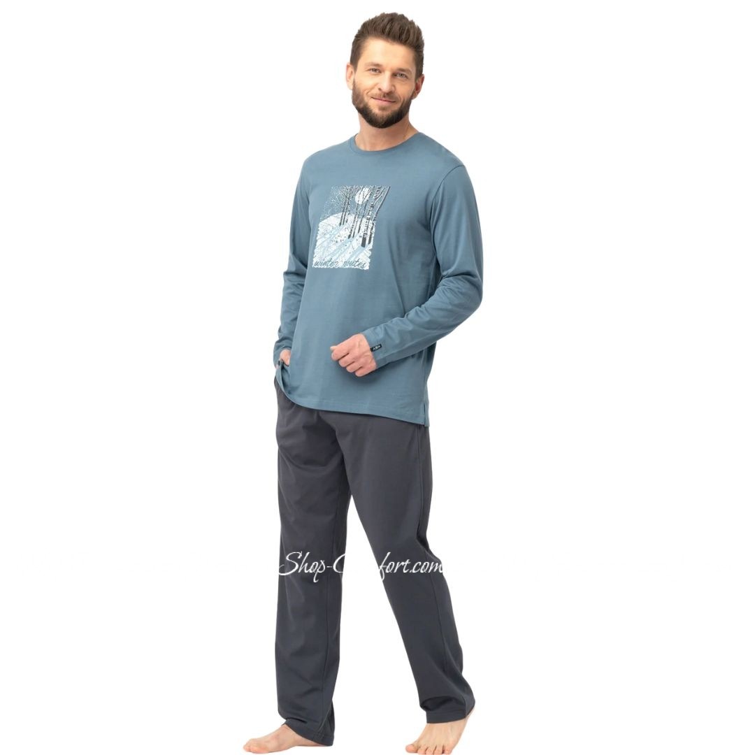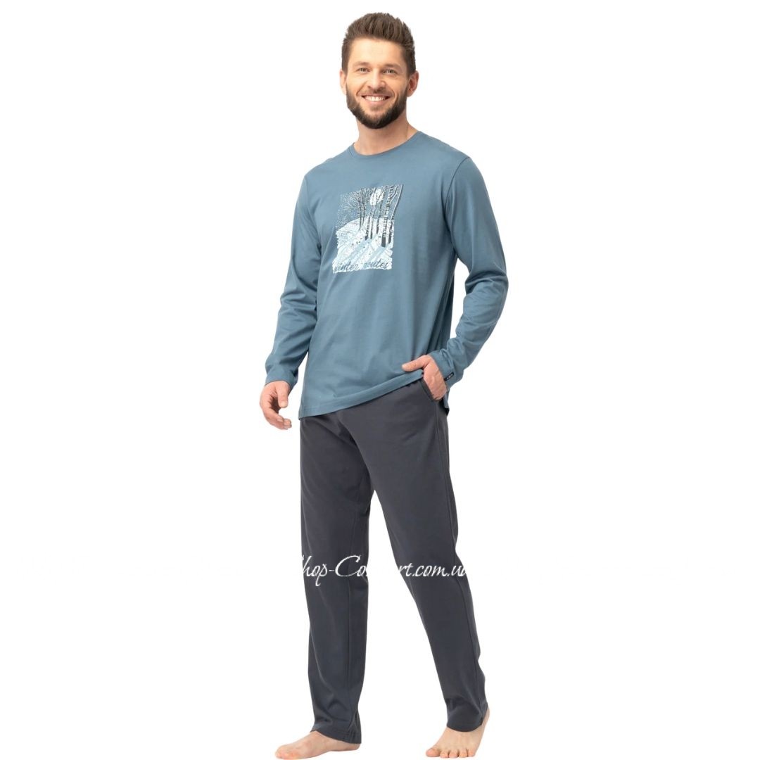 Мужская трикотажная пижама с длинным рукавом Key МNS 627 Код 94020-M