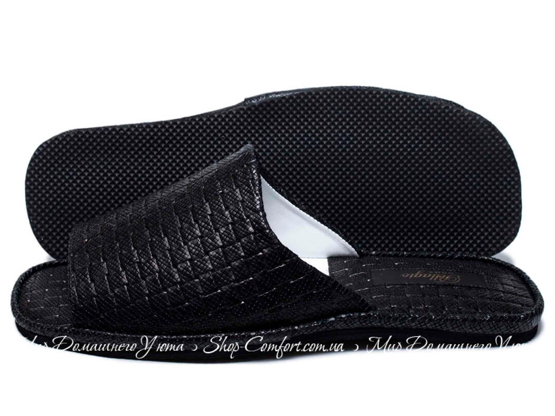 Мужские кожаные комнатные тапочки Pellagio 160 черная клетка Код 93984-40
