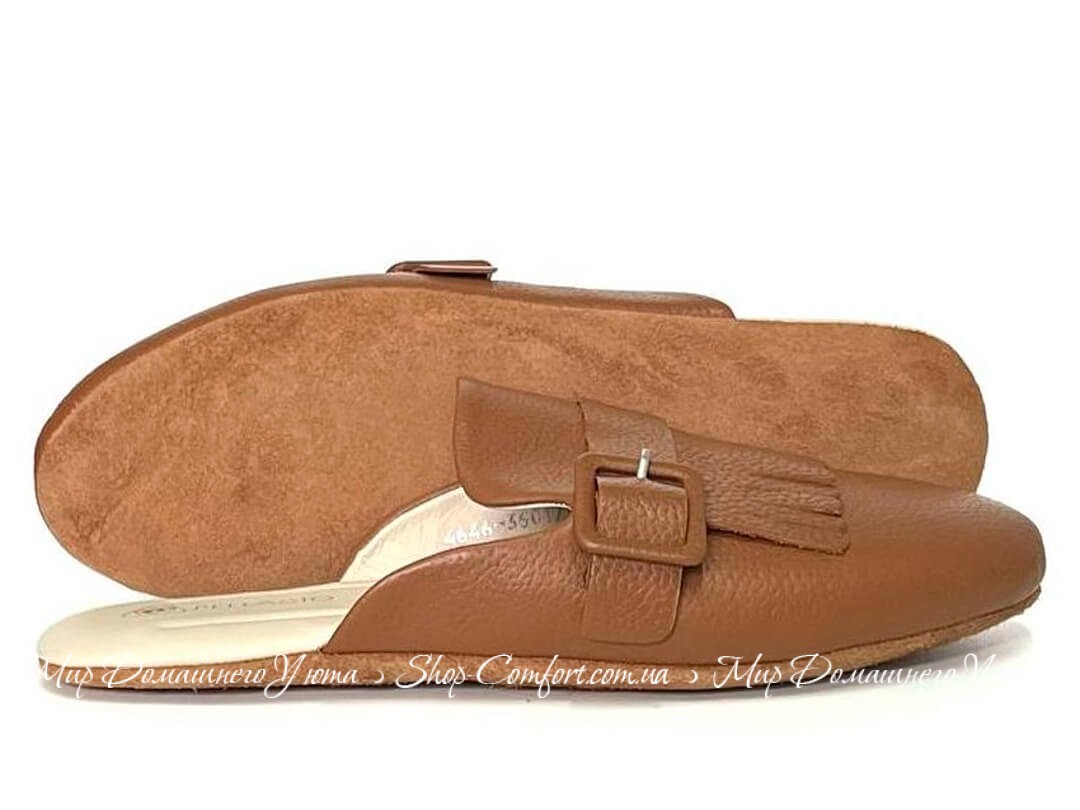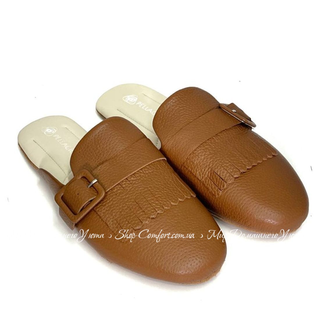 Мужские кожаные комнатные тапочки Pellagio 4646 бежевый флотар Код 94211-40