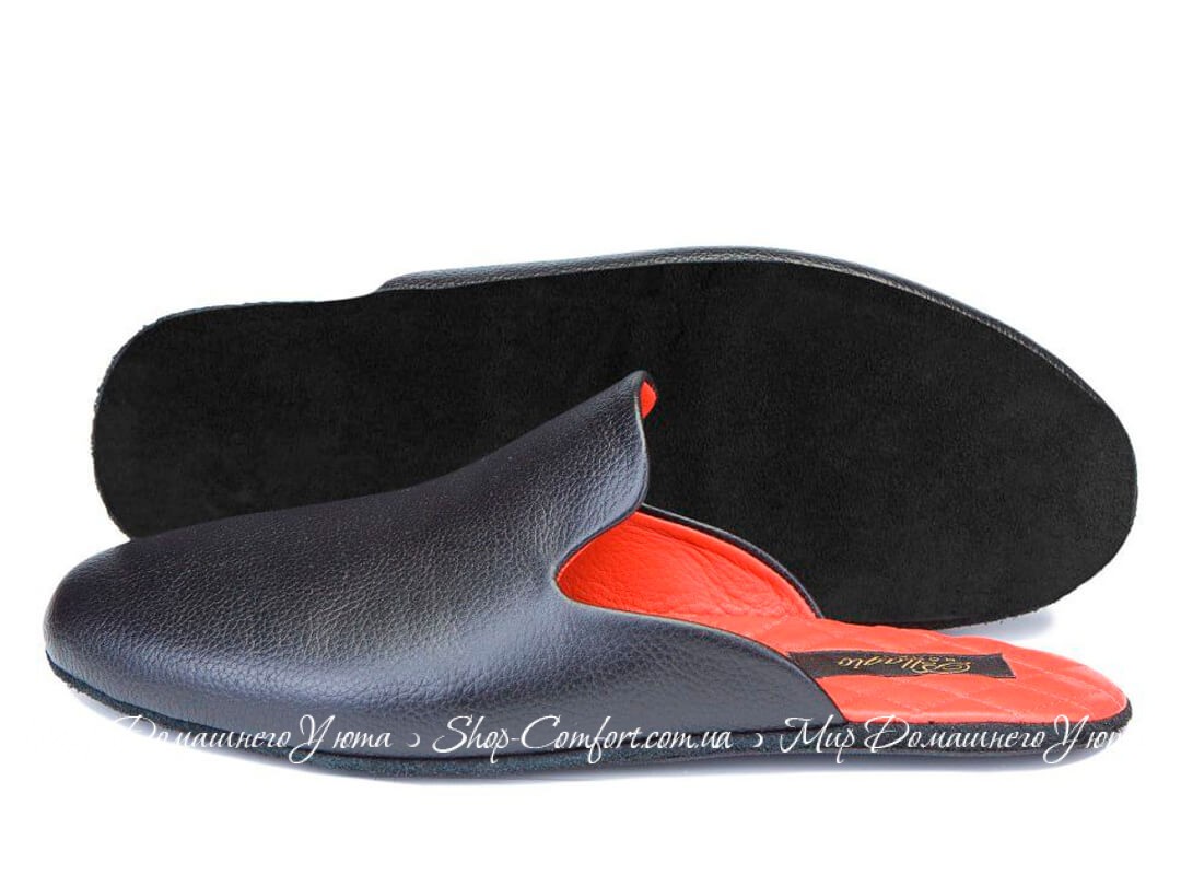 Мужские кожаные тапочки Pellagio 4641 черный флотар Код 87585-40