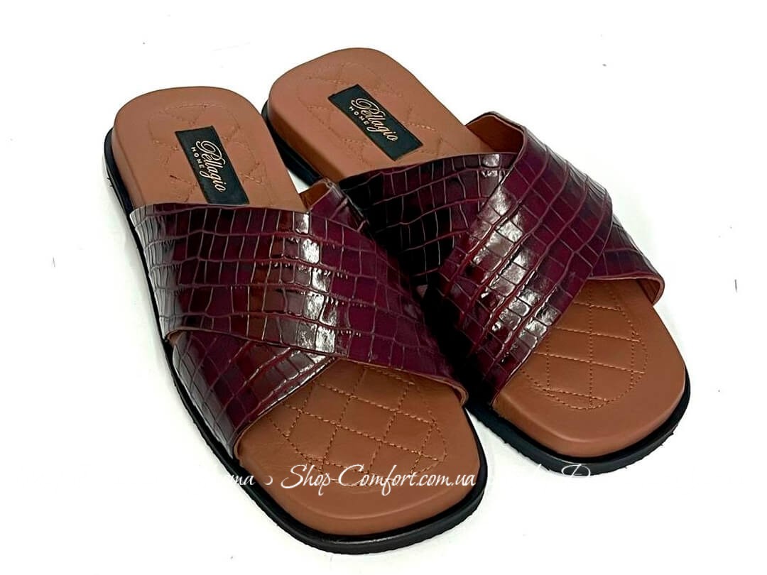 Открытые мужские кожаные комнатные тапочки Pellagio 167 0204 бордовий крокодил Код 94205-40