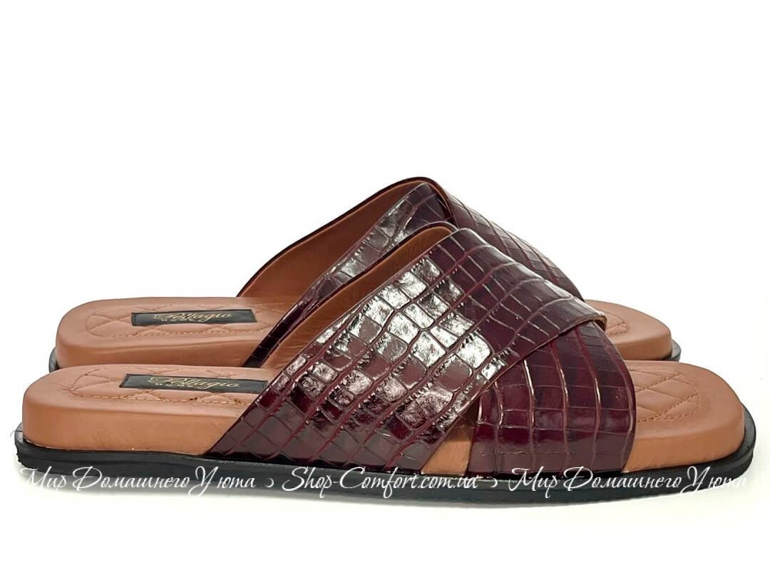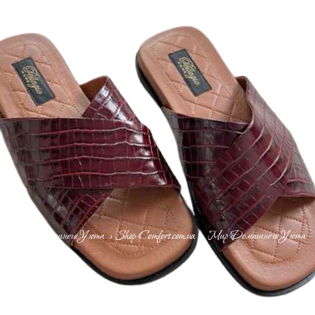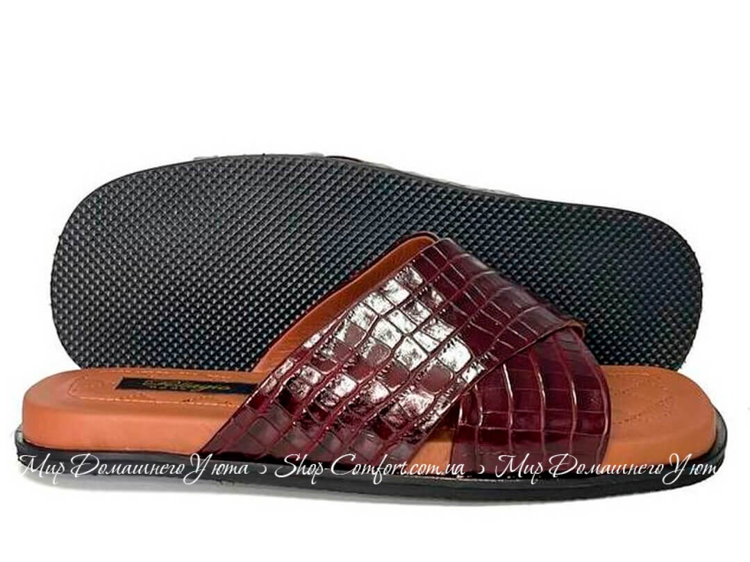 Описание Открытые мужские кожаные комнатные тапочки Pellagio 167 0204 бордовий крокодил