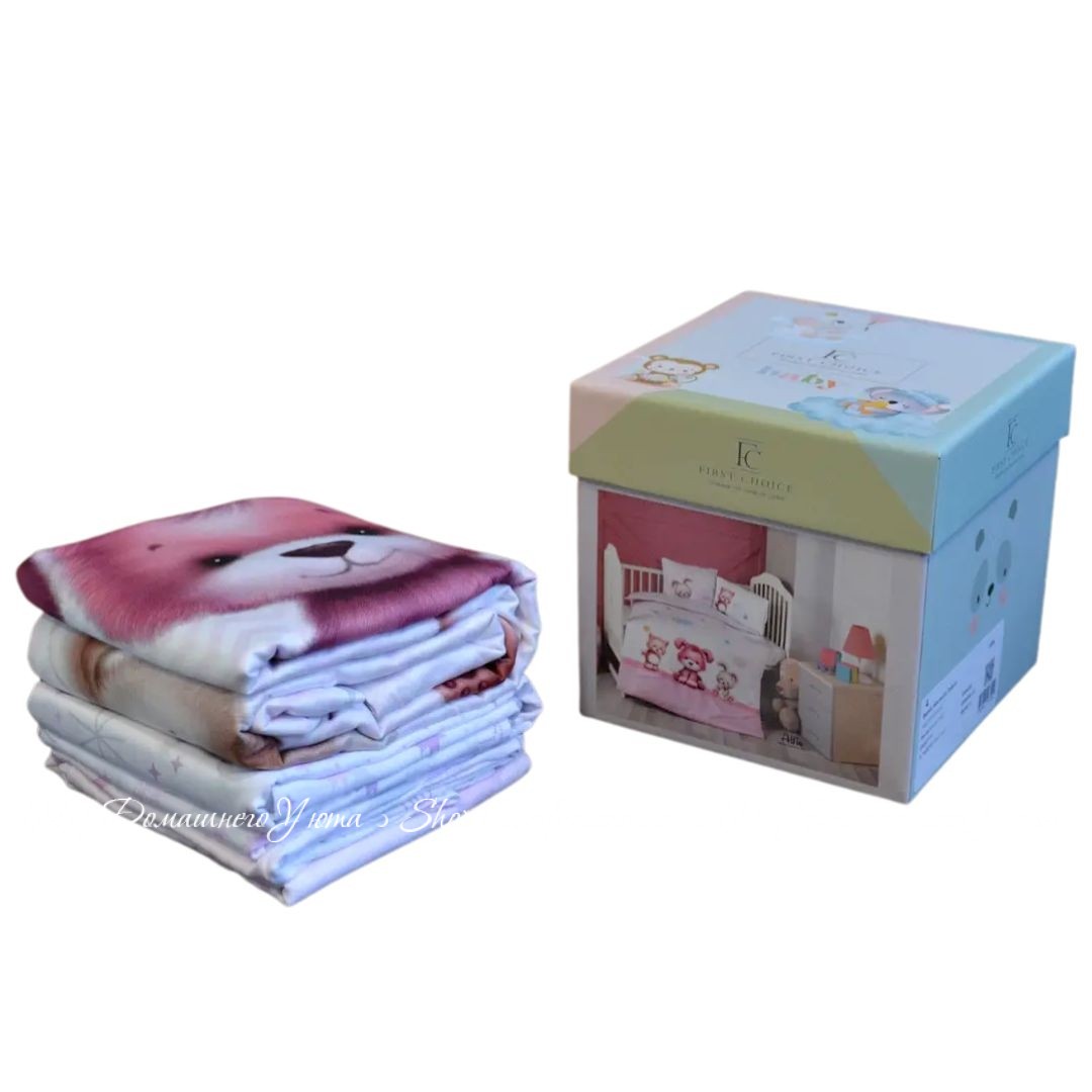 Описание Сатиновое постельное белье First Choice 3D Alfie для новорожденных