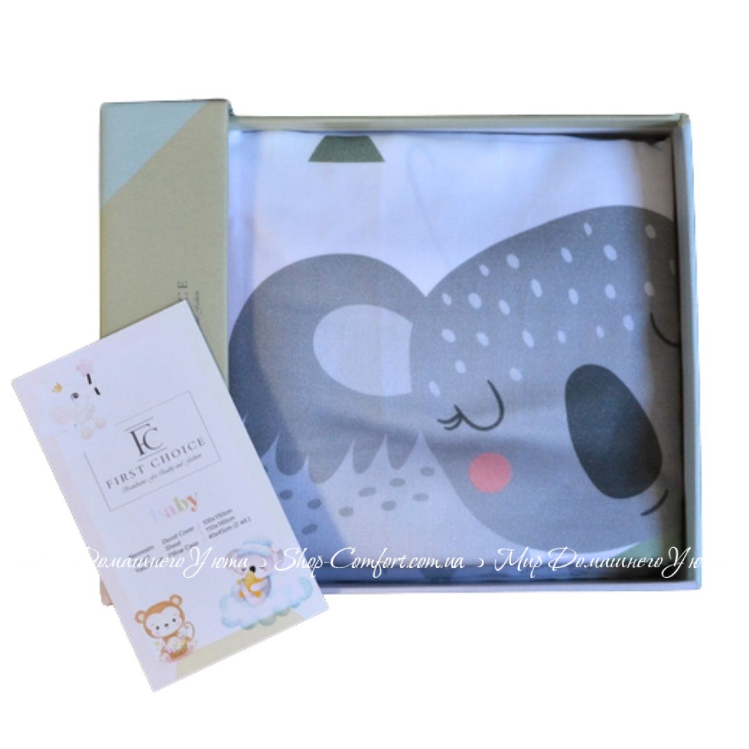 - Наволочка: 40x45 см (2 шт.)Характеристики Сатиновое постельное белье First Choice 3D Koala для новорожденных