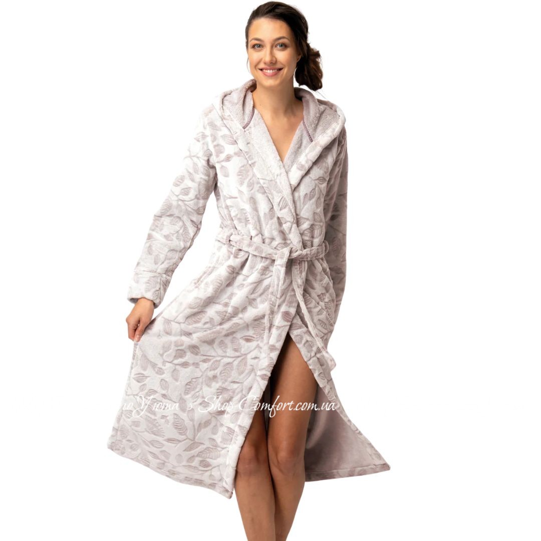 Теплый длинный женский халат с капюшоном Key LGL 545 Код 94235-S/M