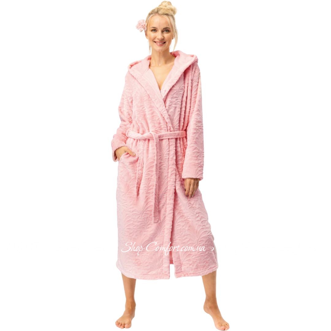 Теплый длинный женский халат с капюшоном Key LGL 565 Код 94236-S/M