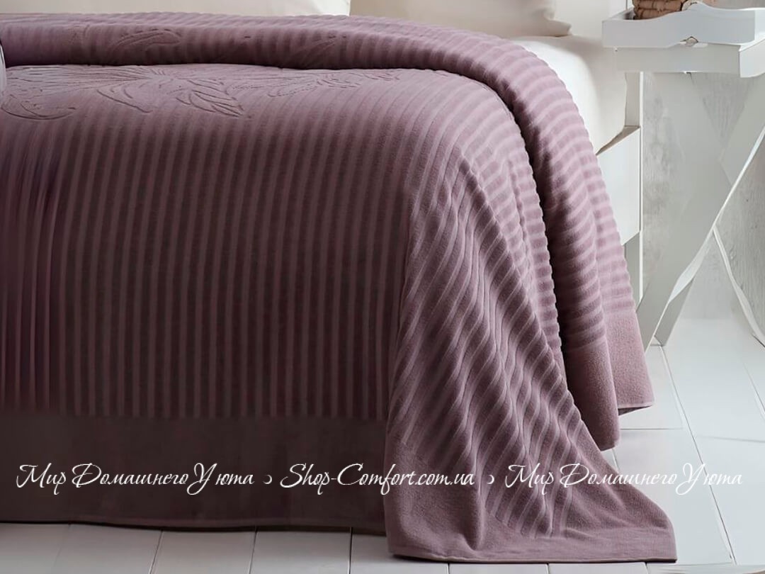 Размер160х220ЦветВнимание! Цвет и оттенок на фото может отличаться от реального товара, в зависимости от настроек вашего монитора (яркость, контраст, насыщенность), а также освещения в помещении.ЛиловыйСостав100% хлопокТканьвелюр, махраКомплектацияБез наволочекМатериалхлопокОсобенностис жаккардовым узоромСтранаТурция