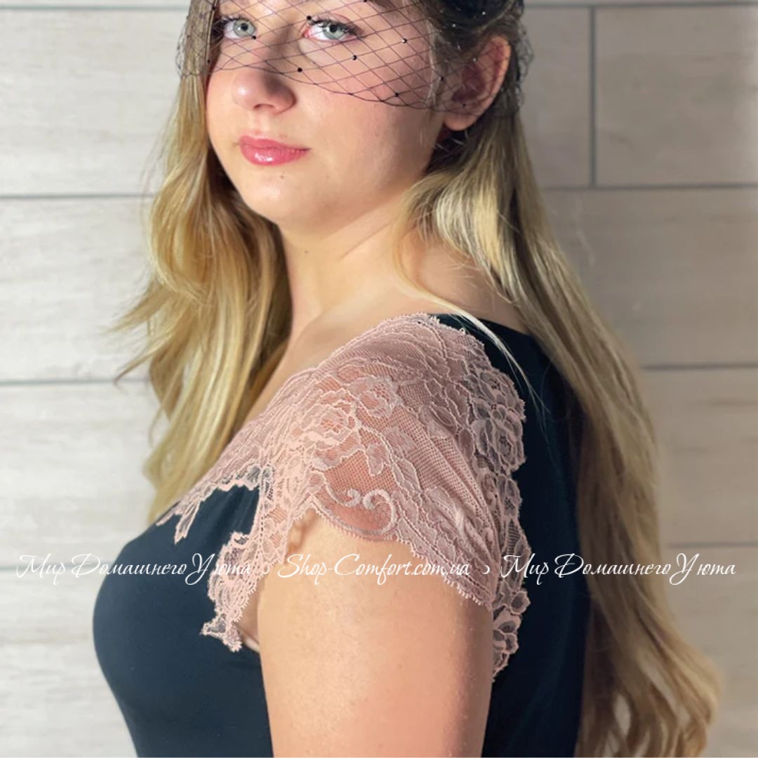 ✔ Короткий рукав из мягкого, эластичного кружева нежно-розового цвета