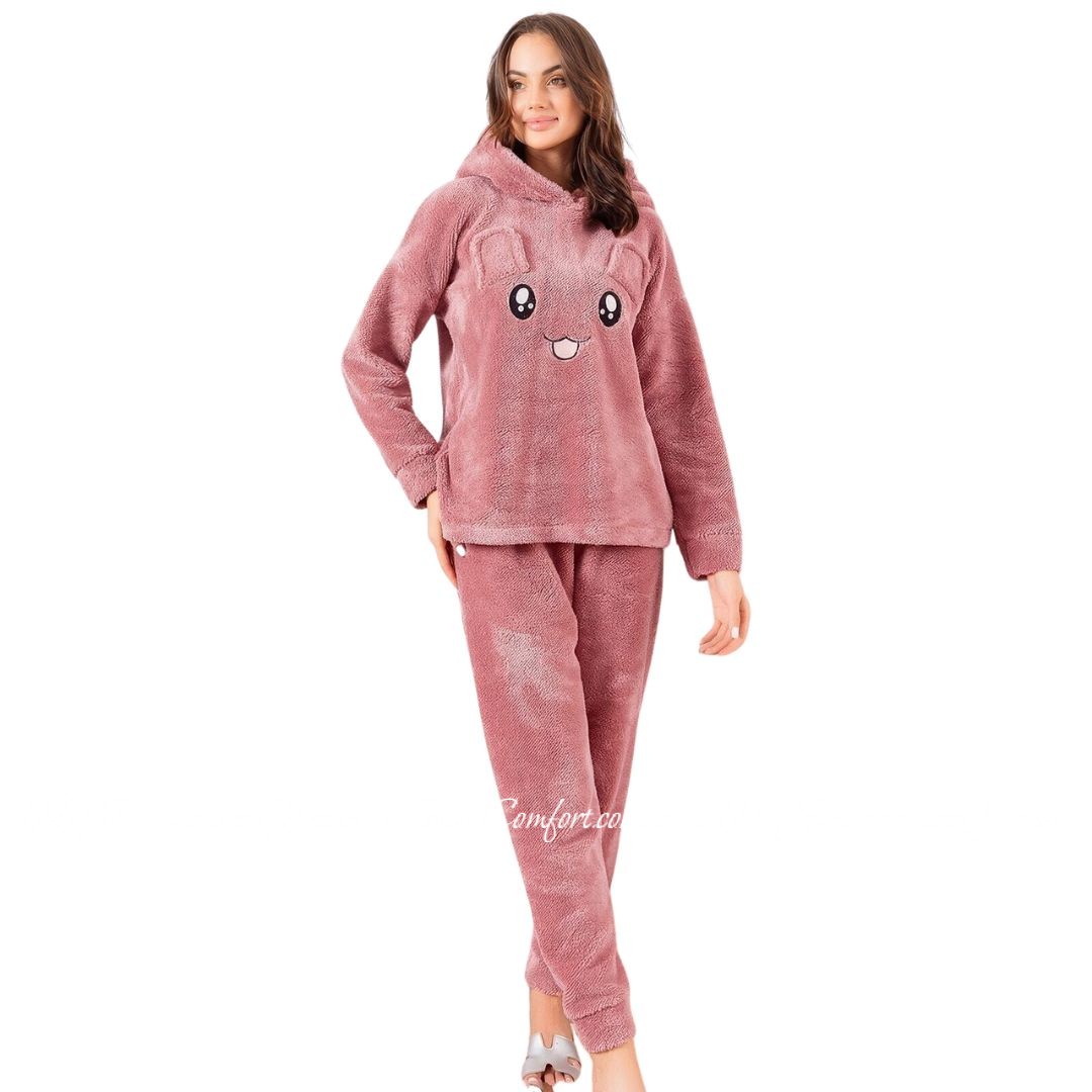 ✔ Капюшон кофты украшен ушками, а на груди аппликация в виде "мордочки"Характеристики Женский домашний теплый костюм Cocoon О66-5055 пудра
