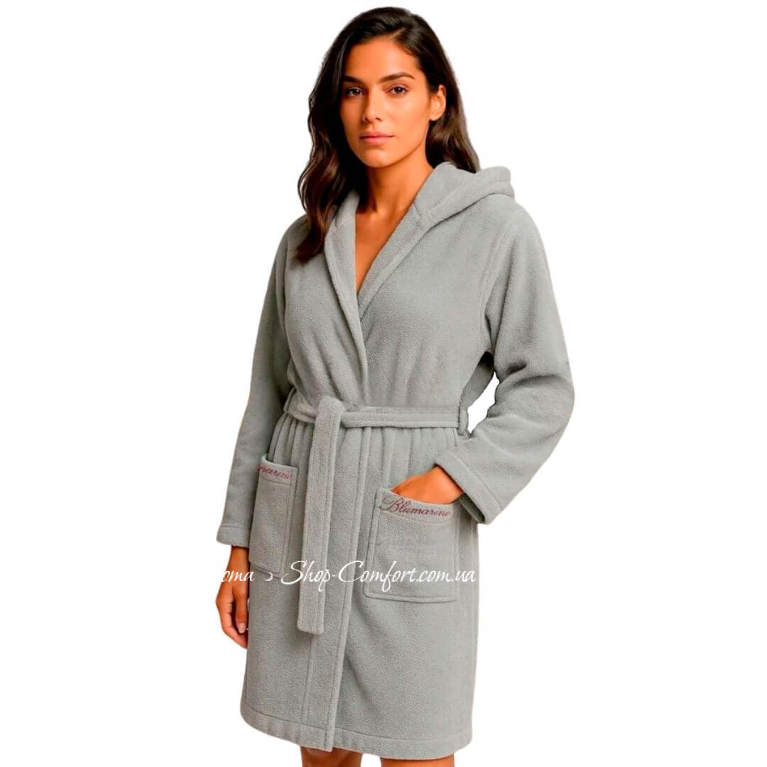Женский серый махровый халат с капюшоном Blumarine SPA Silver Код 91655-S/M